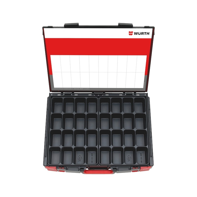 Skrúfbitasett með RW, PH, PZ, TX, SD og sexkantabitum ásamt bitahaldara. Fjölhæft og skipulagt með færanlegum bitaröðum.
