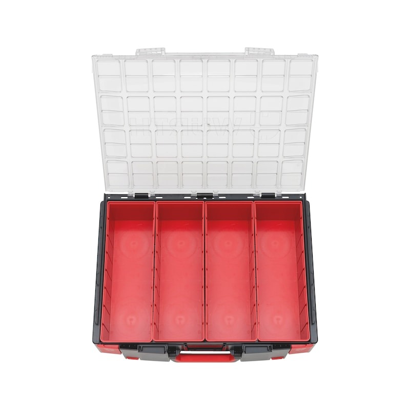 Skrúfbitasett með RW, PH, PZ, TX, SD og sexkantabitum ásamt bitahaldara. Fjölhæft og skipulagt með færanlegum bitaröðum.